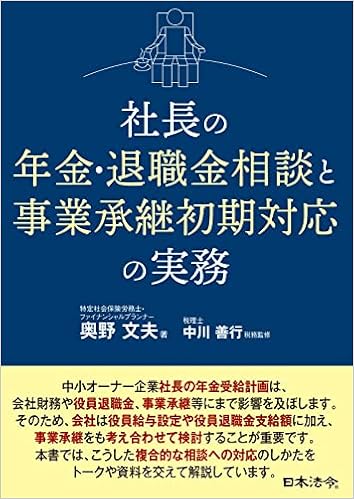 書籍「社長の年金よくある勘違いから学ぶ在職老齢年金 (日本法令/奥野文夫著:税込2,750円」 書籍「社長の裏技・年金をもらって会社にお金を残す」 (ぱる出版/奥野文夫著:税込1,650円) 在職老齢年金シミュレーションソフト 社長の年金繰り下げシミュレーションソフト 社長の年金セミナー開催用レジュメ |